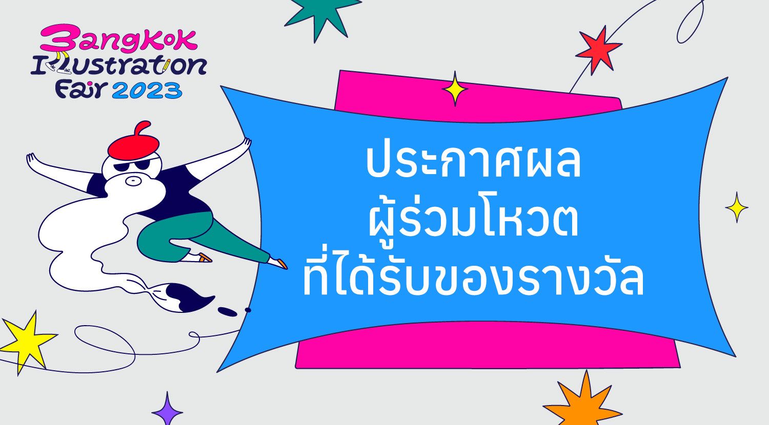 01.11.2023 ประกาศรายชื่อ BKKIF Artist 2023 ขอแสดงความยินดีกับศิลปินจำนวน 150 ราย ที่ได้มาร่วมจัดแสดงผลงานใน Bangkok Illustration Fair 2023 ที่หอศิลปกรุงเทพฯ และขอส่งกำลังใจและพลังให้กับศิลปินที่ยังไม่ได้เข้ารอบในปีนี้ทุกๆ คน สู้ต่อนะ แล้วเจอกันใหม่ปีหน้า!
